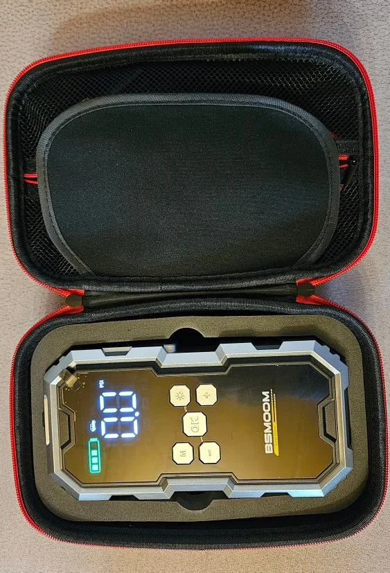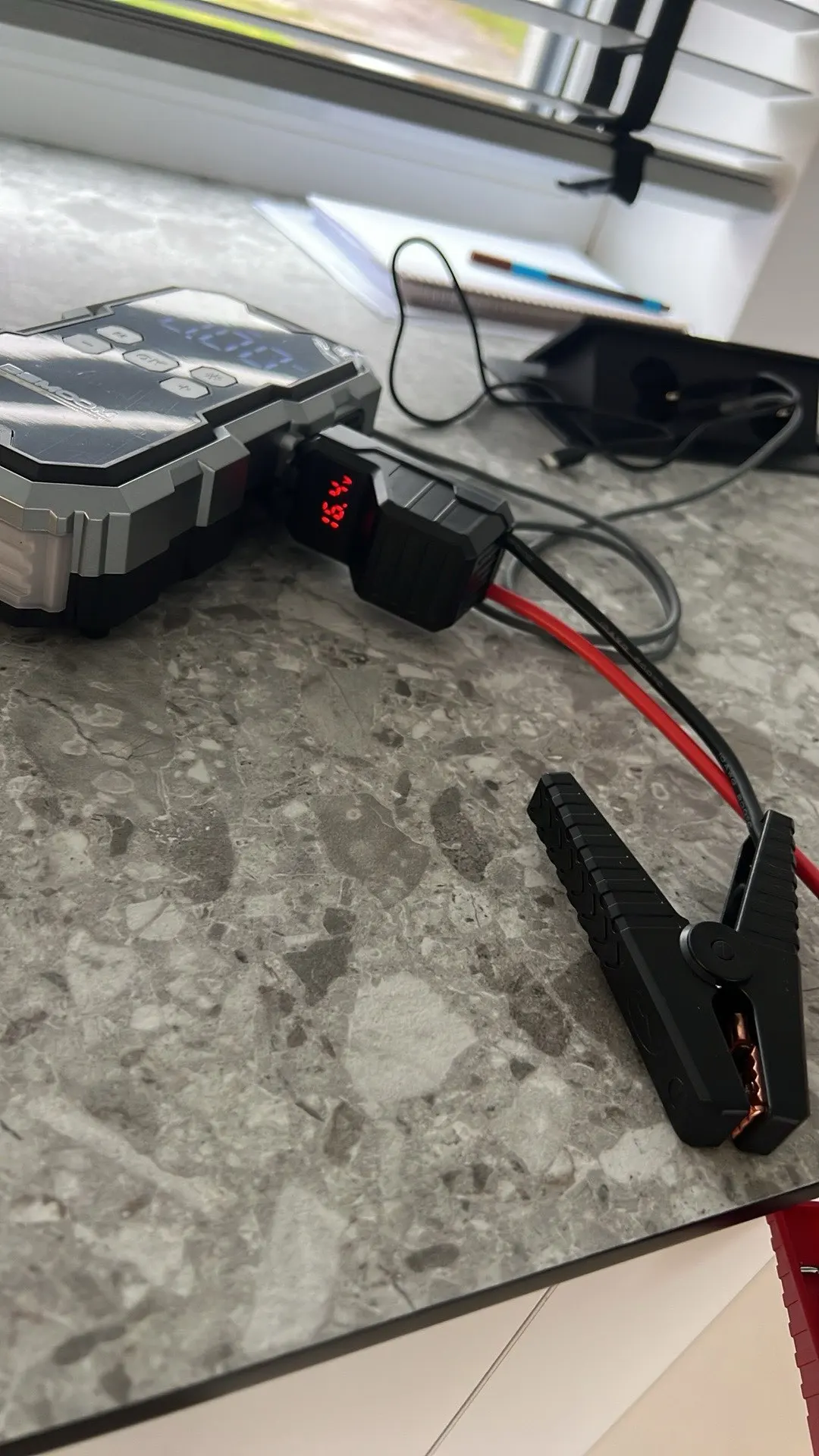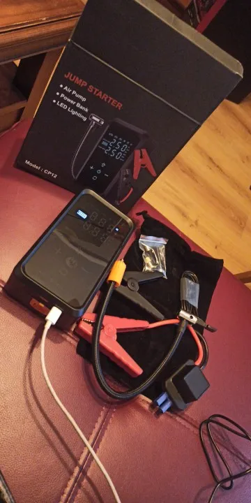 Looks good, try to jump start today vw golf 4, 1.9 tdi, with almost death battery, so it’s works perfectly. And try to start lawnmower tractor, but that one battery was death show only lights on the dashboard, not even trying to spin starter, but i put it on this jump starter, so it was working very good.. so i start car snd tractor and battery was still full. I try compresor, it’s looks like working, but i haven’t try to blow tire, but it was blowing when i start it up. Fast delivery to lithuania it come in one week